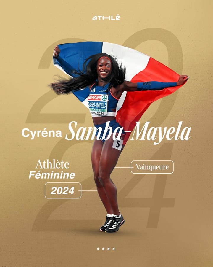 🏆 Cyréna Samba-Mayela (Lille Métropole Athlétisme) a été élue 𝗔𝗧𝗛𝗟𝗘𝗧𝗘 𝗙𝗘𝗠𝗜𝗡𝗜𝗡𝗘 𝟮𝟬𝟮𝟰 avec 33,39 % des voix sur Athle.fr et les réseaux sociaux de la FFA !