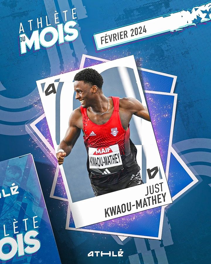 đ„ Just Kwaou – Mathey, qui a notamment battu son record en 7”43 sur 60 m haies, a Ă©tĂ© Ă©lu #AthlĂšteDuMois de fĂ©vrier 2024 avec plus de 23% des voix sur Athle.fr et les rĂ©seaux sociaux de la FFA ! đ