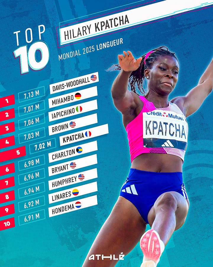 đ Les Français dans le TOP 10 au bilan mondial 2025 : Hilary Kpatcha 5e au saut en longueur ! đ«đ·