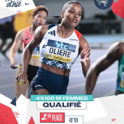 👉 Avec une équipe remodelée par rapport aux séries, le relais féminin (Raffai, Veyssière, Iscaye, Sylla) a fini 8e de la finale en 3’30”96.