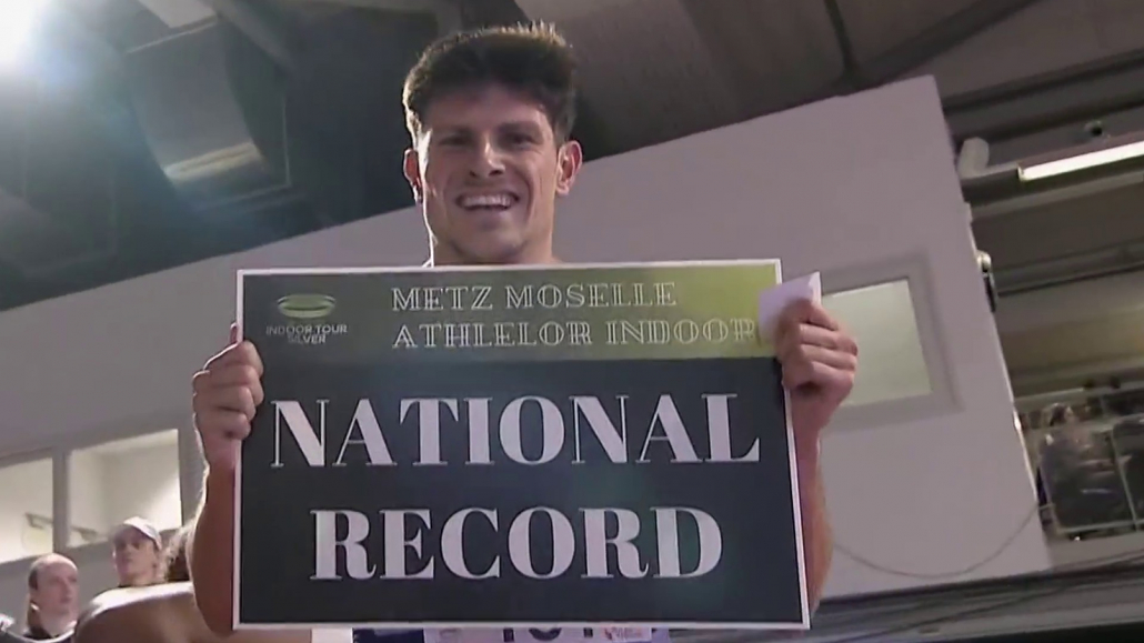 💥 Benjamin Robert s’empare du record de France du 600 m en salle à Metz ! Le chrono national de référence était détenu par Pierre-Ambroise Bosse (1’15″63 en 2013 à Moscou).