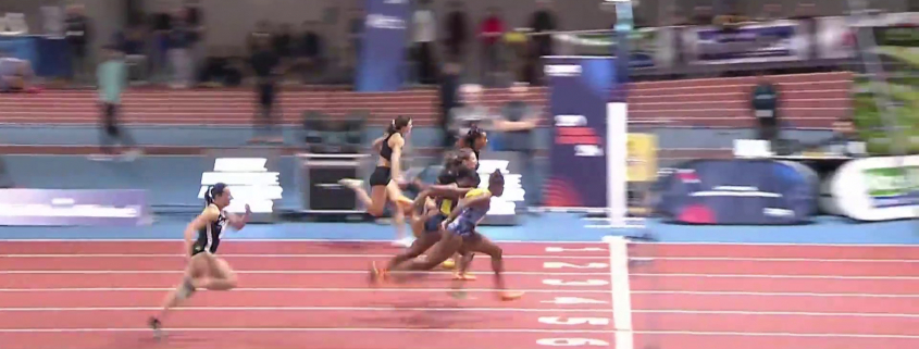 🇨🇵 Judy Chalcou remporte la finale du 60 m haies en 8”04 devant 🇺🇸 Corthey Jones et 🇨🇵 Solenn Compper, créditées toutes les deux en 8”07 au Meeting Metz Moselle Athlélor !