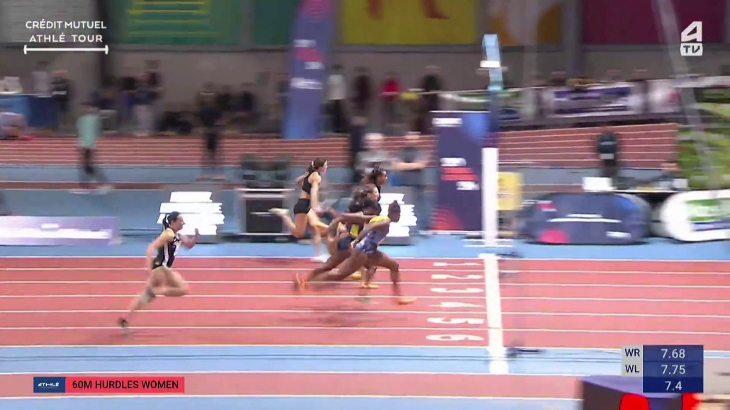 🇨🇵 Judy Chalcou remporte la finale du 60 m haies en 8”04 devant 🇺🇸 Corthey Jones et 🇨🇵 Solenn Compper, créditées toutes les deux en 8”07 au Meeting Metz Moselle Athlélor !