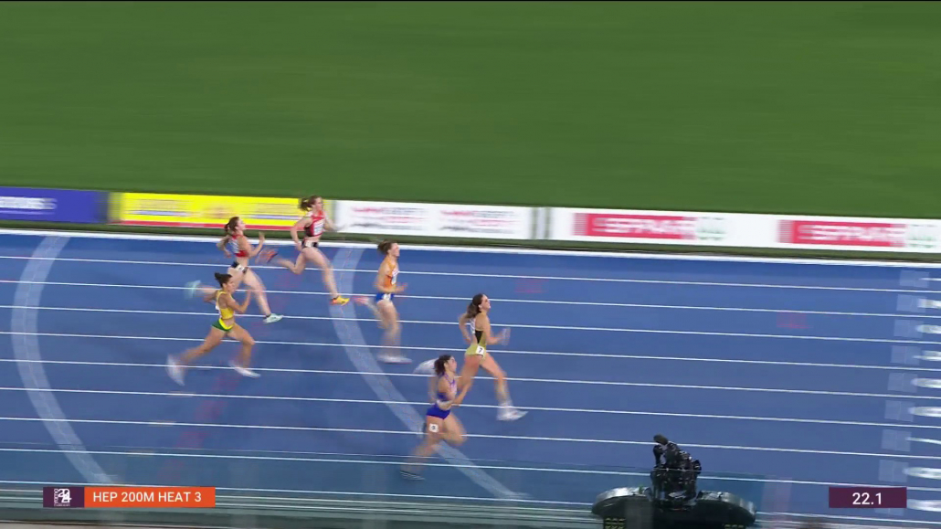 🇫🇷 Auriana Lazraq-Khlass bat ou égale son 4e record en quatre épreuves de l’heptathlon, en prenant la 2e place du 200 m en 23”56 (+0.1) !
